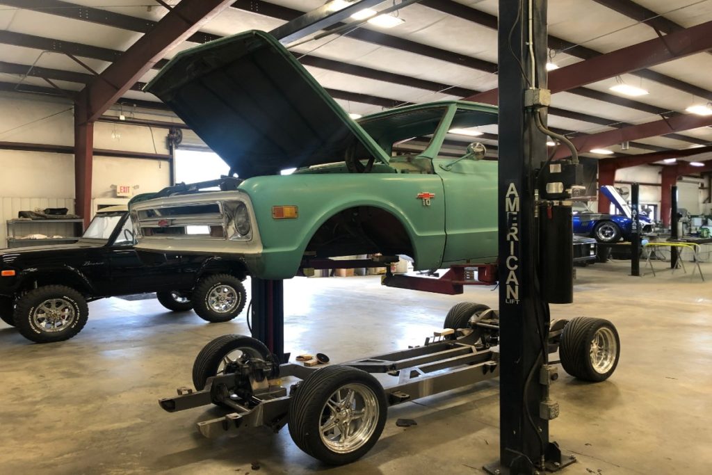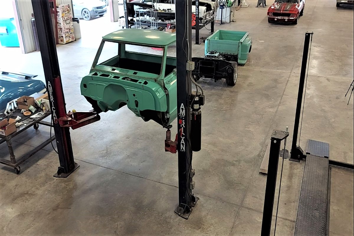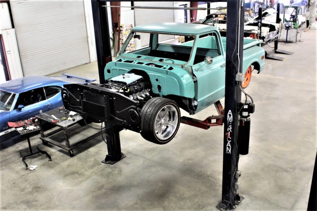 Custom LT4 1968 Chevy C10 Hot rod Truck Build – Body going onto Roadster Shop Chassis