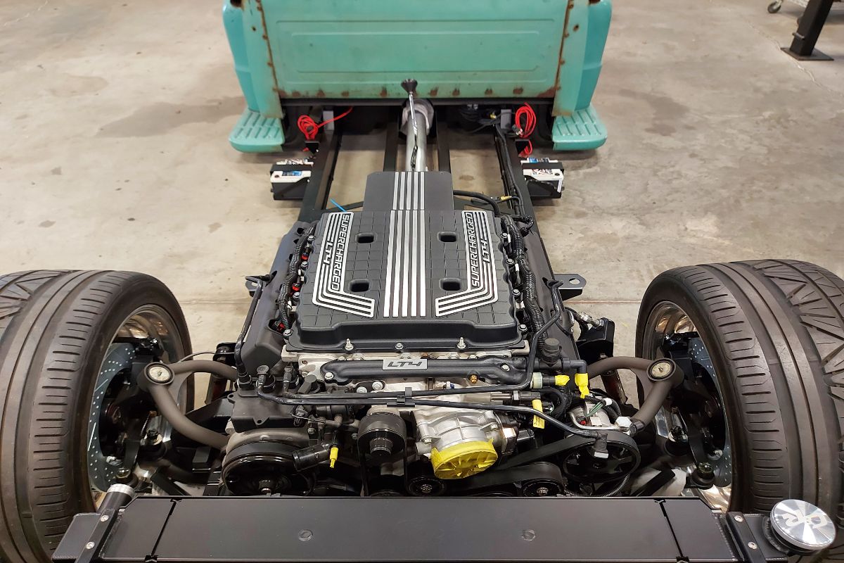 Custom LT4 1986 Chevy C10 hot rod truck chassis assembly