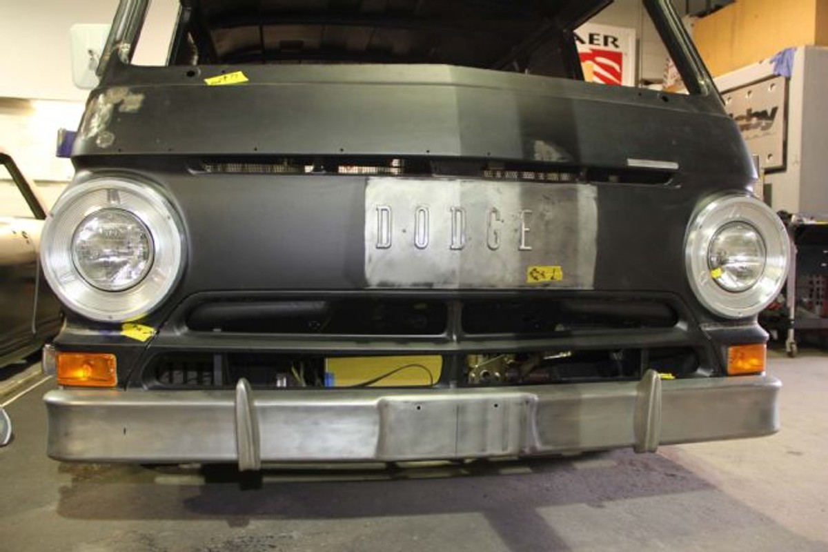 Custom 1969 Dodge A 108 Hemi Van build front air dam fabrication