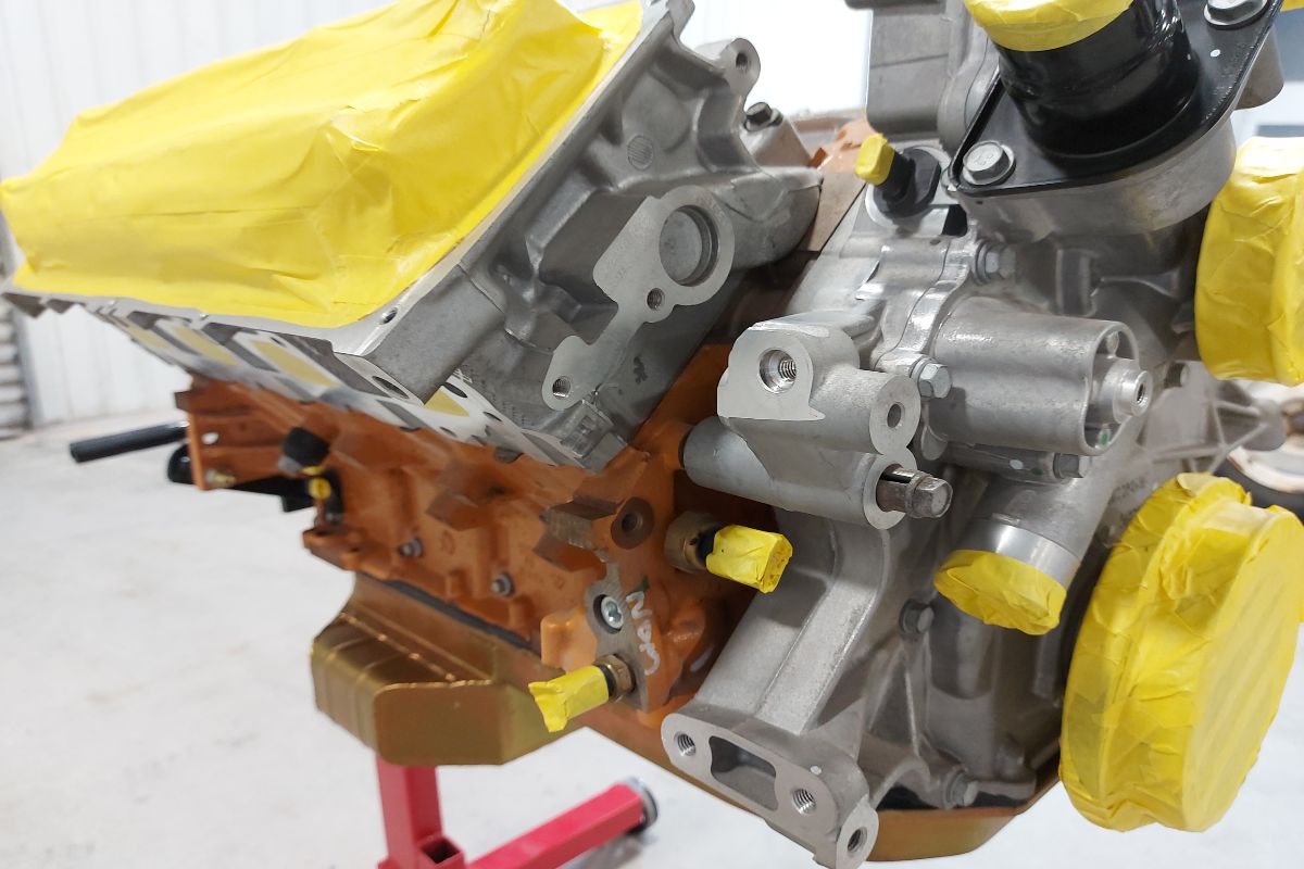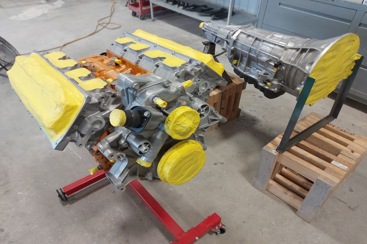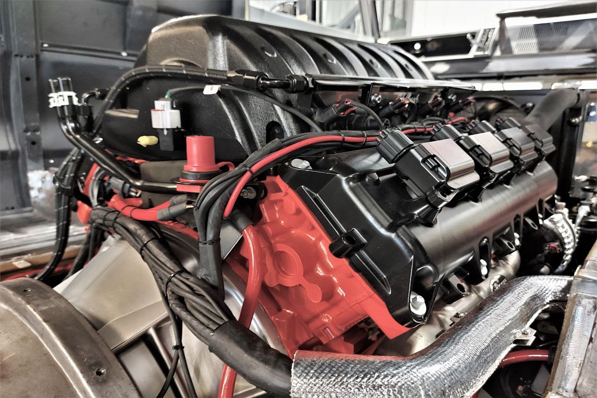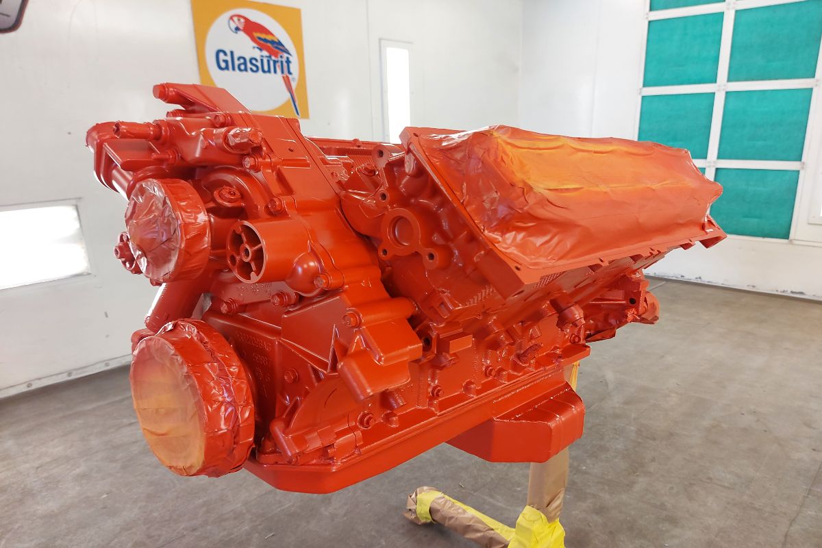 Custom 1969 Dodge A 108 Hemi Van engine painted