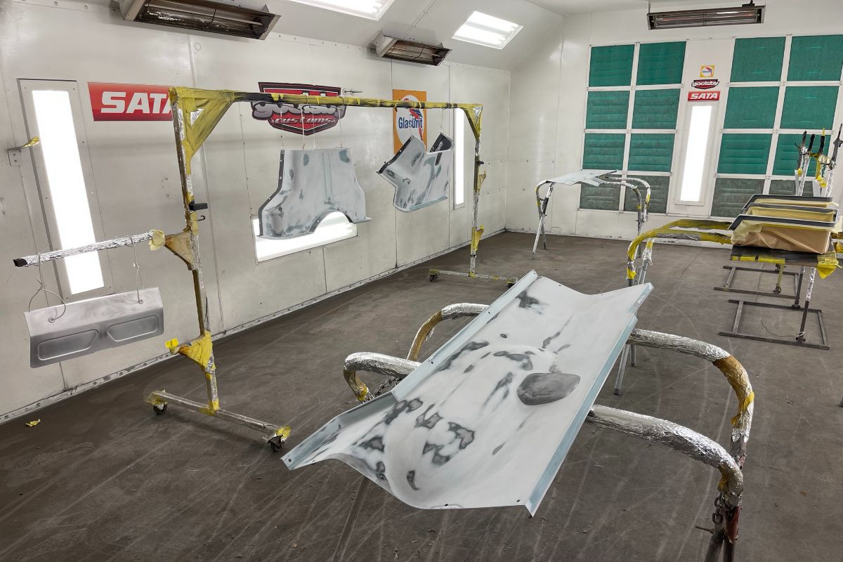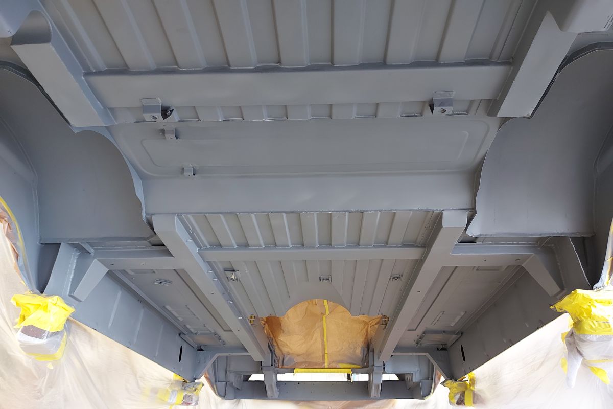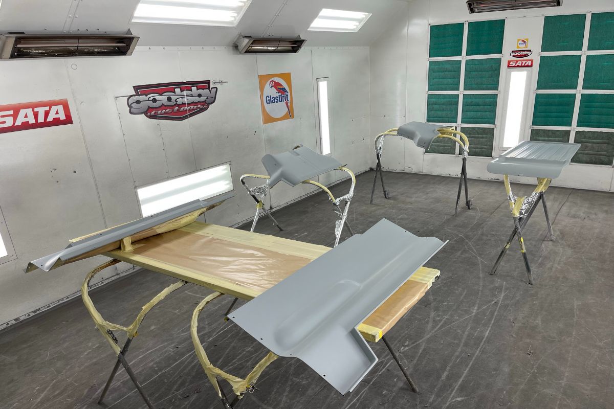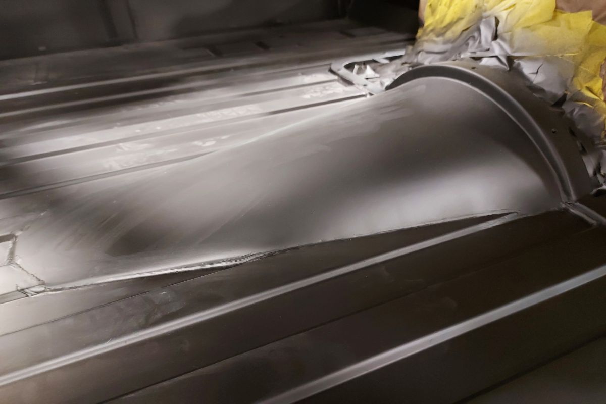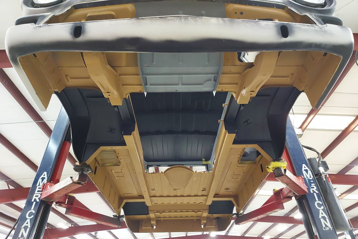 Custom 1969 Dodge A 108 Hemi Van build body rust repair, primer, and undercoat