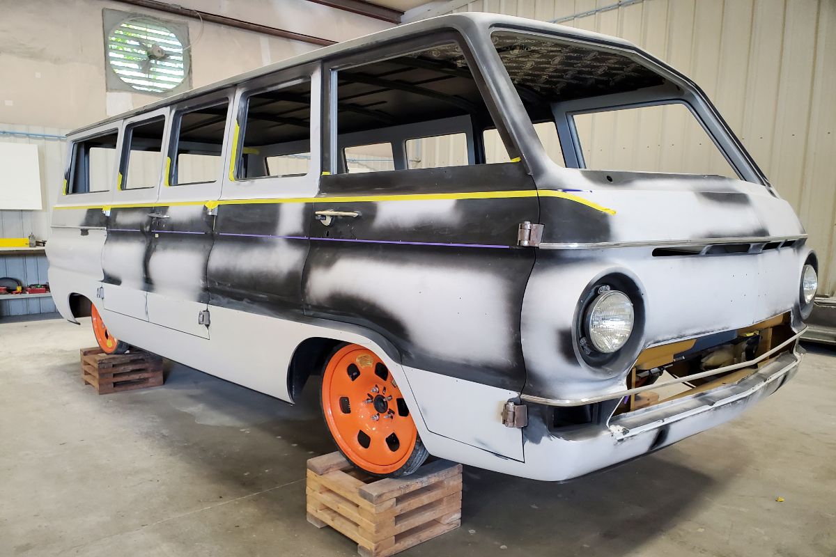 Custom 1969 Dodge A 108 Hemi Van build Body work and primer