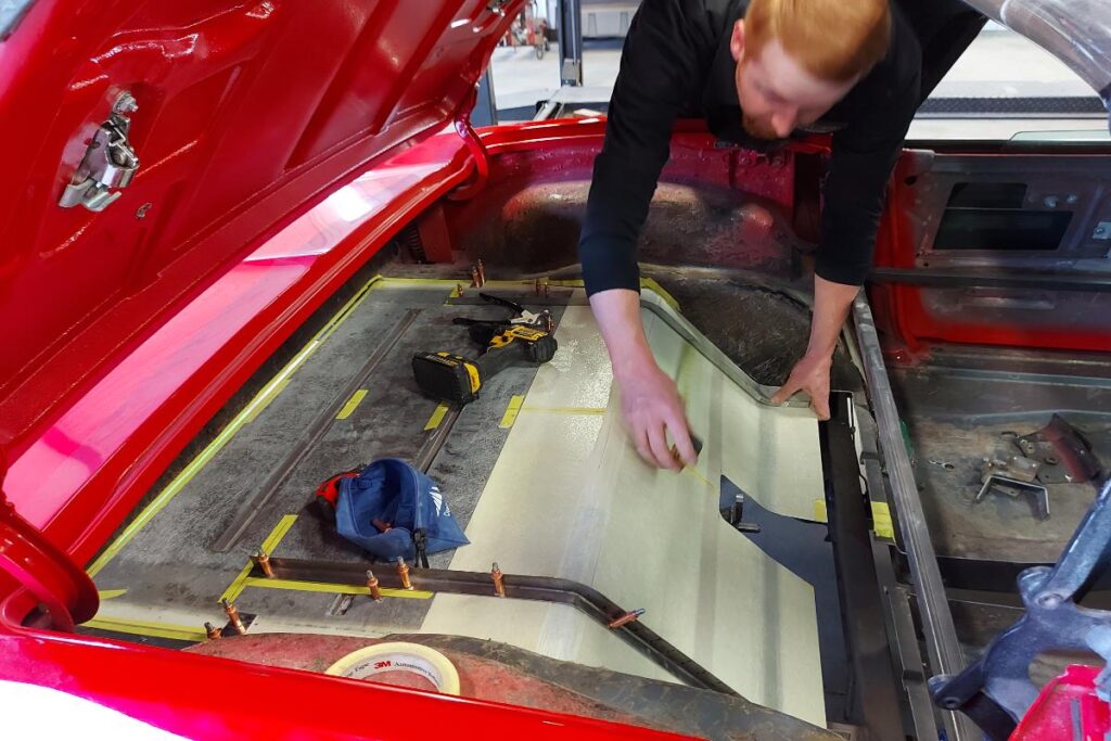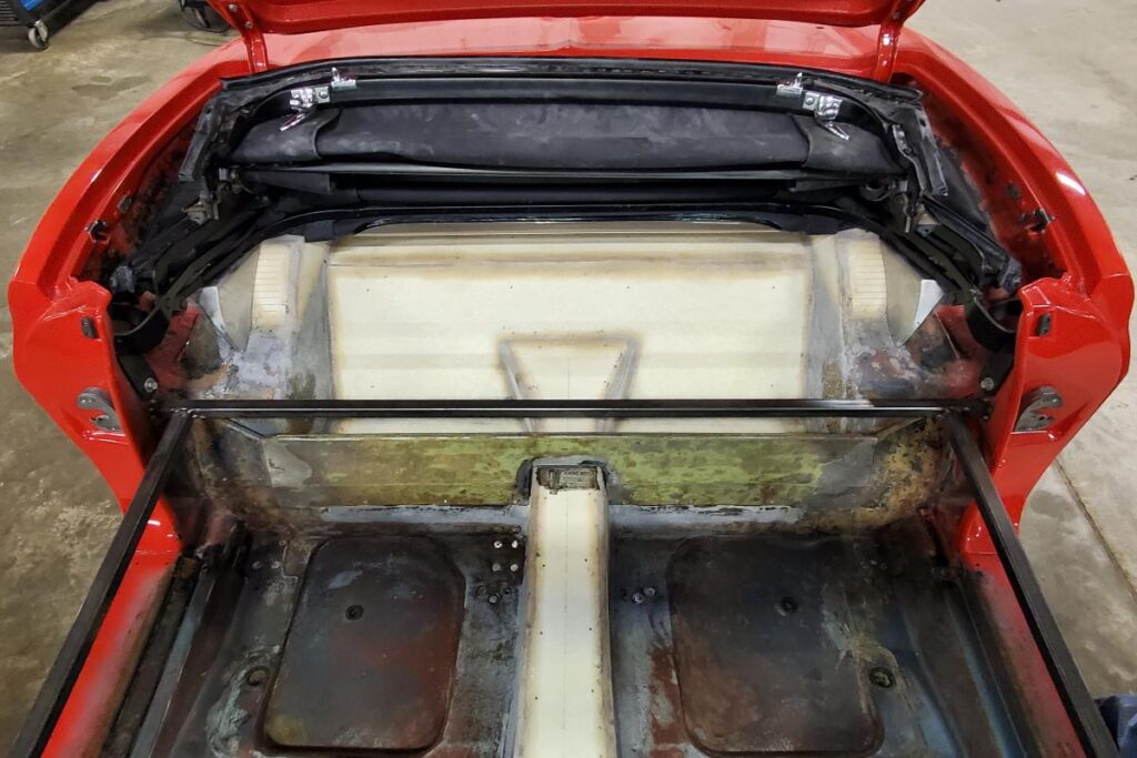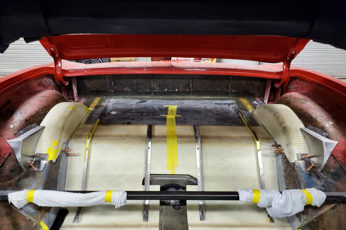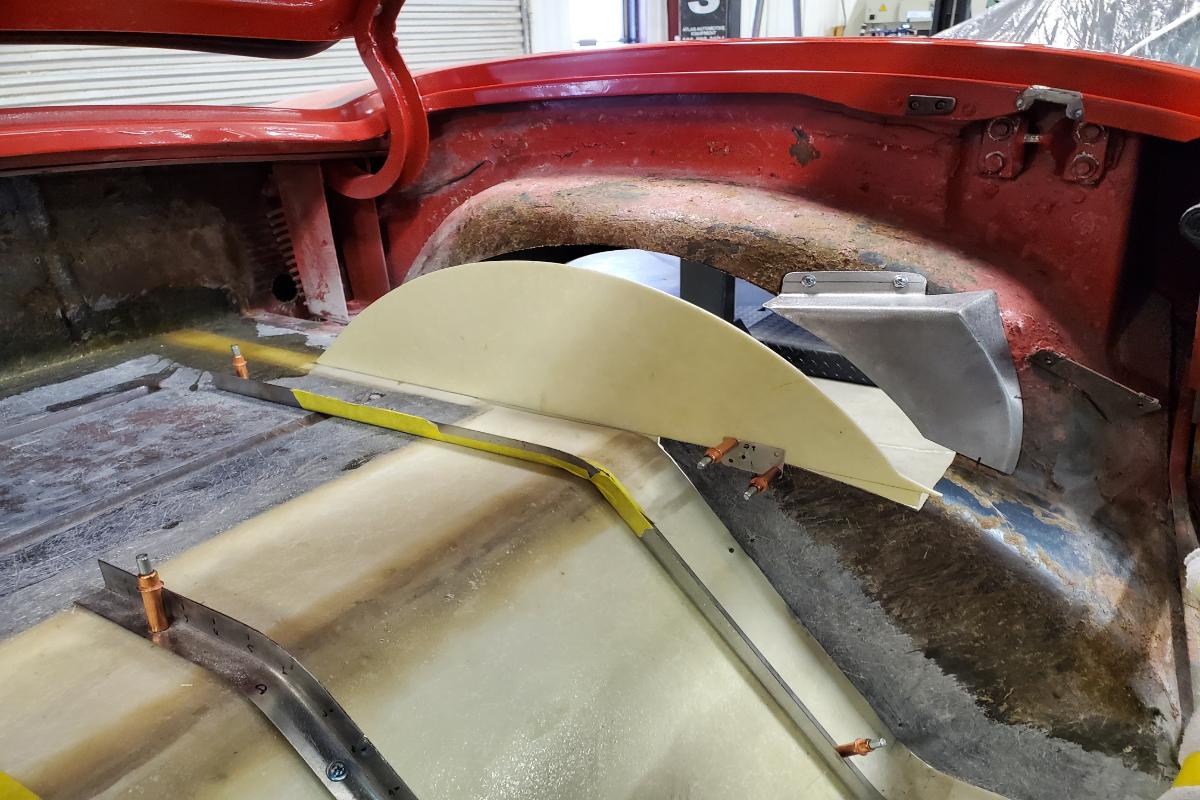 Custom classic 1967 Convertible Corvette restomod rear floor fiberglass fabrication