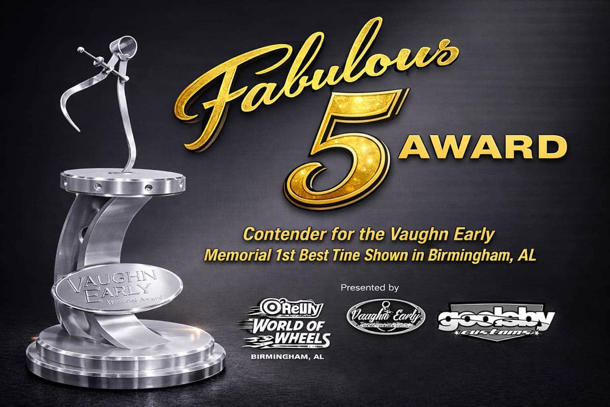 Congratulations to all the 2026 Fabulous 5 Contenders. Camey Limbock 1931 Ford truck, Robert Smith 1967 Chevy Nova, Thomas Dickerson 1967 Chevy truck,  Dan Patrone 1963 Corvette, Janice Sutherland 1956 Plymouth convertible.