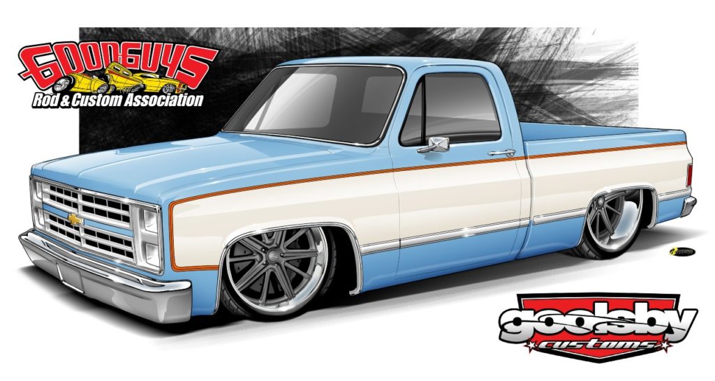 Join us this weekend for the unveiling of the Goodguys Giveaway ’85 C-10 “JeNNY” plus stop by the Goolsby Customs booth to see George Poteet’s ’60 Impala, Kenzie’s ’68 C-10 “Gert” and Nathan’s ’32 Ford Tudor Sedan “Fifth Avenue Special” on display all weekend.
